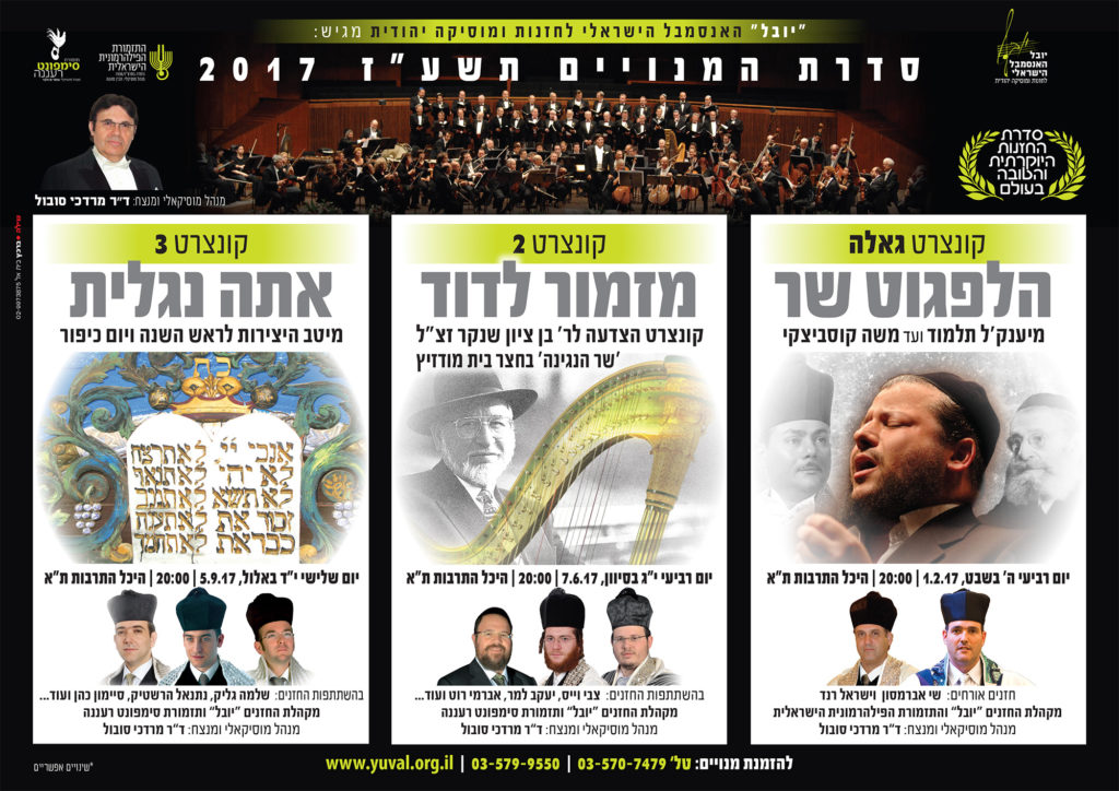 Yuval, headed by Dr Mordechai Sobol has put out the schedule for three concerts in the upcoming year.